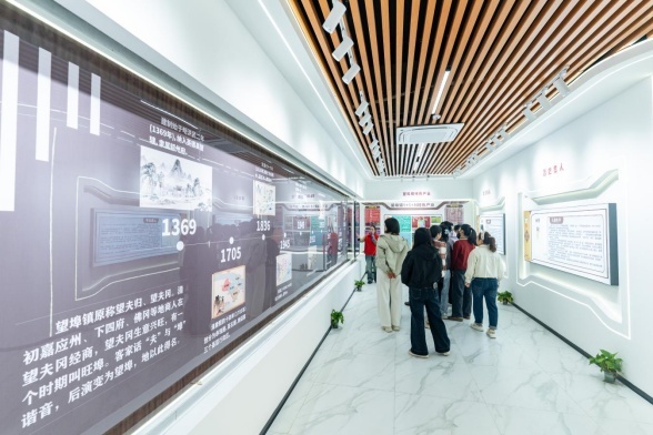 485平方米的多功能“圩镇客厅”成了展示望埠镇史脉络与发展成就的窗口,电商直播展销区,助力本土农产品与温泉资源拓宽销路;同时融入知青记忆、乡贤文化元素,打造成为党群联谊、情感交融的公共文化空间。